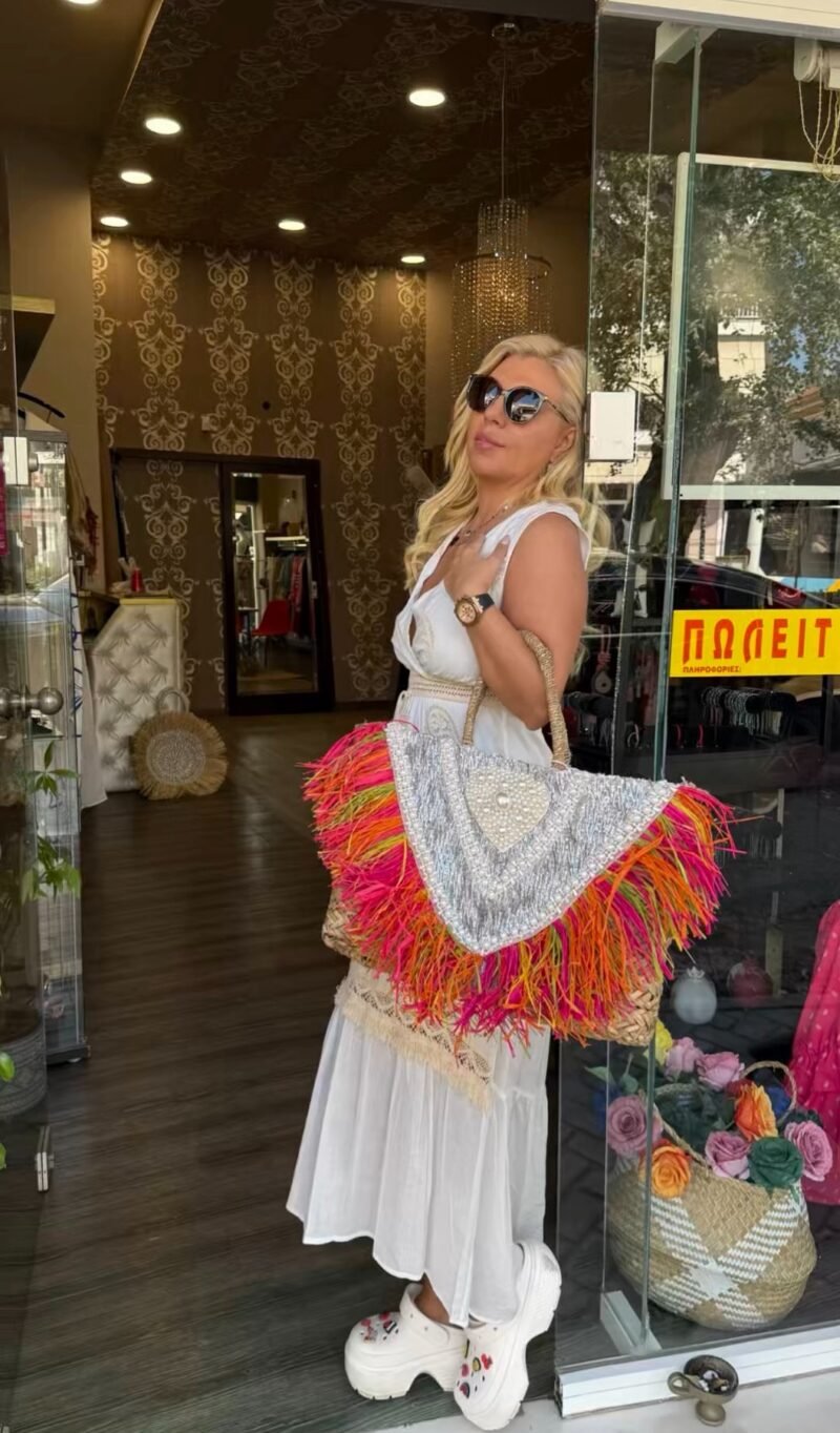 Λευκό φόρεμα με τιράντες και κεντητά λεμόνια