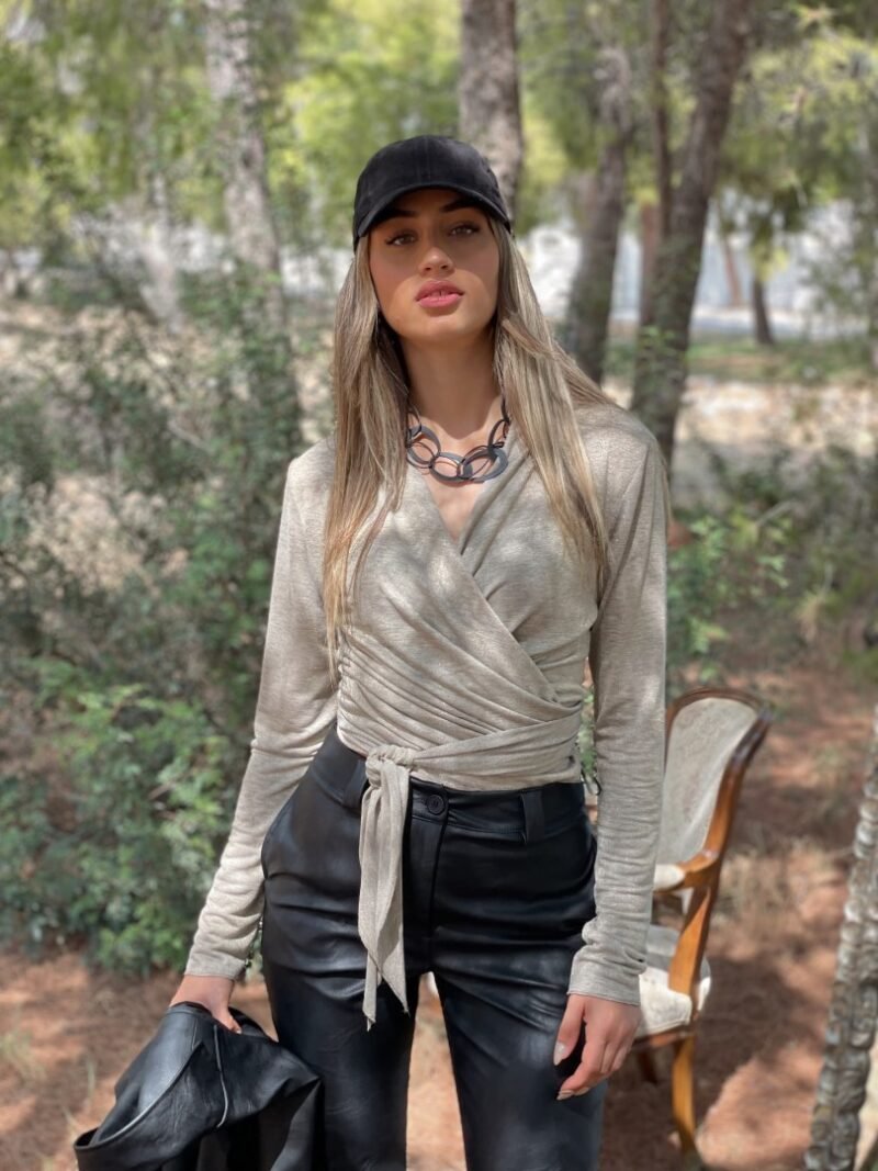 PRIVE-Μπλούζα δετή με lurex (59%Visc. – 38%Met. – 3%EA)