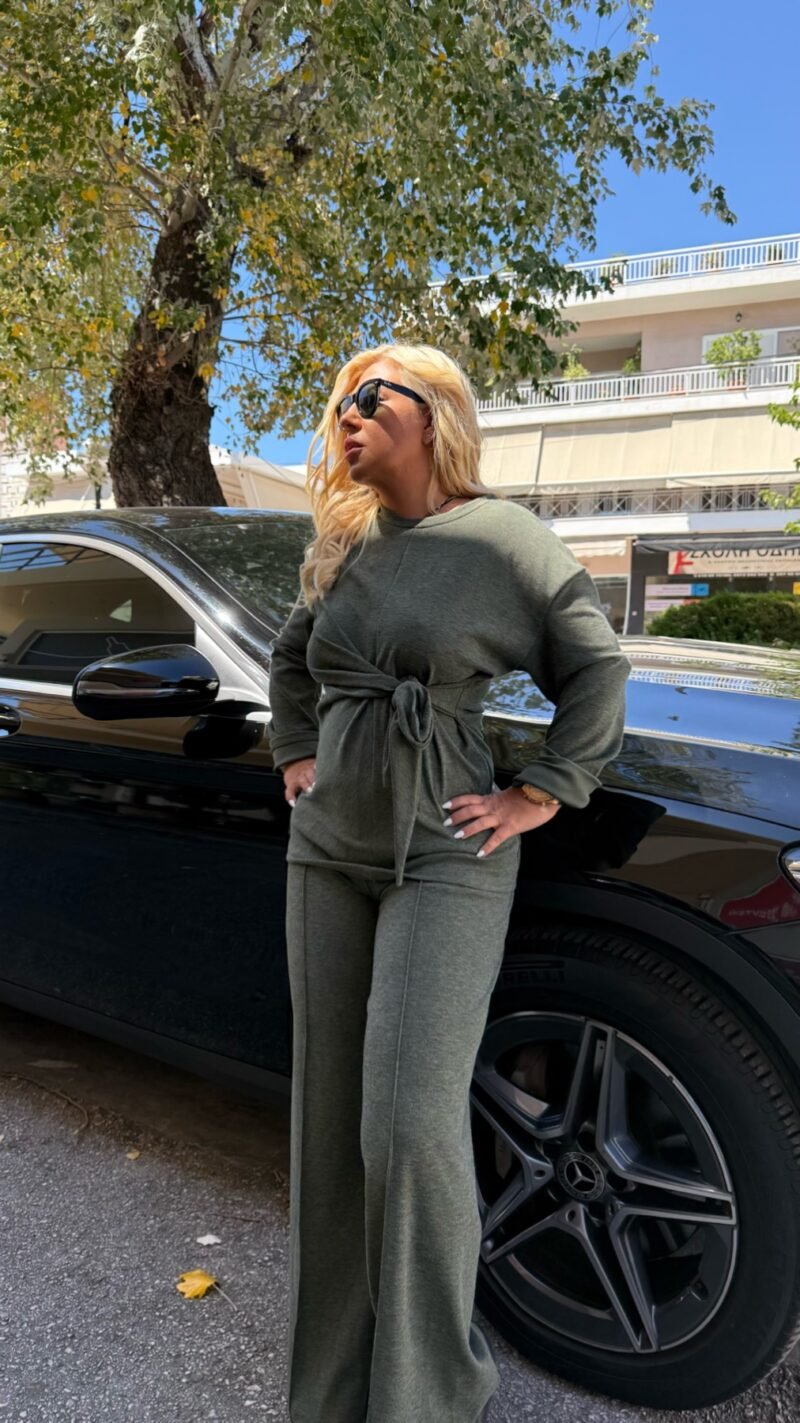 Σετ με Μπλούζα Δέσιμο στη Μέση & Φαρδύ Παντελόνι